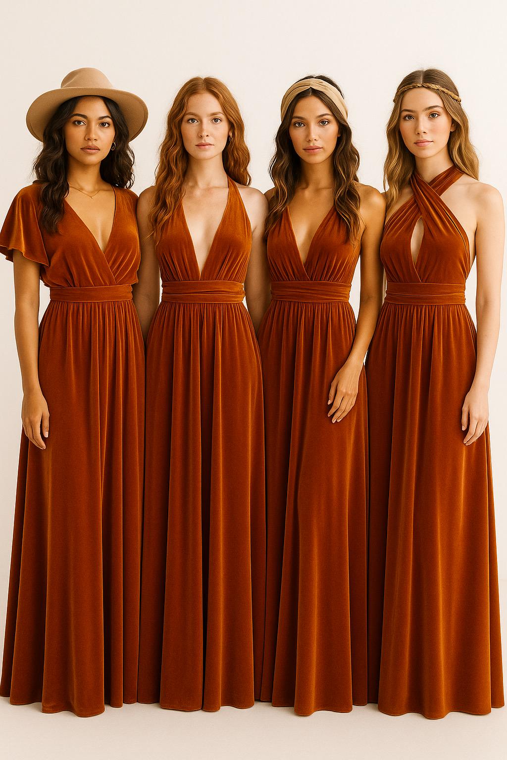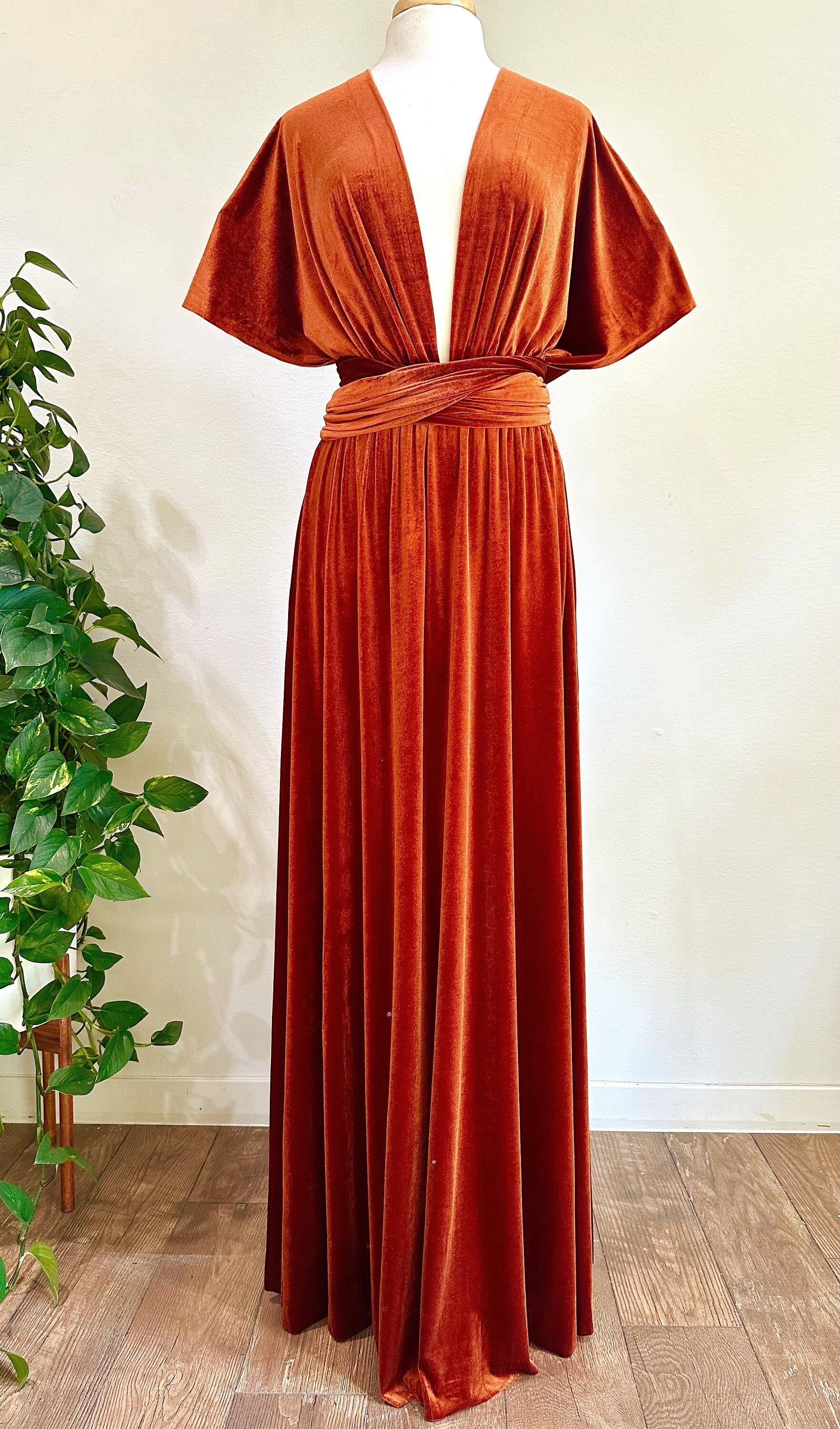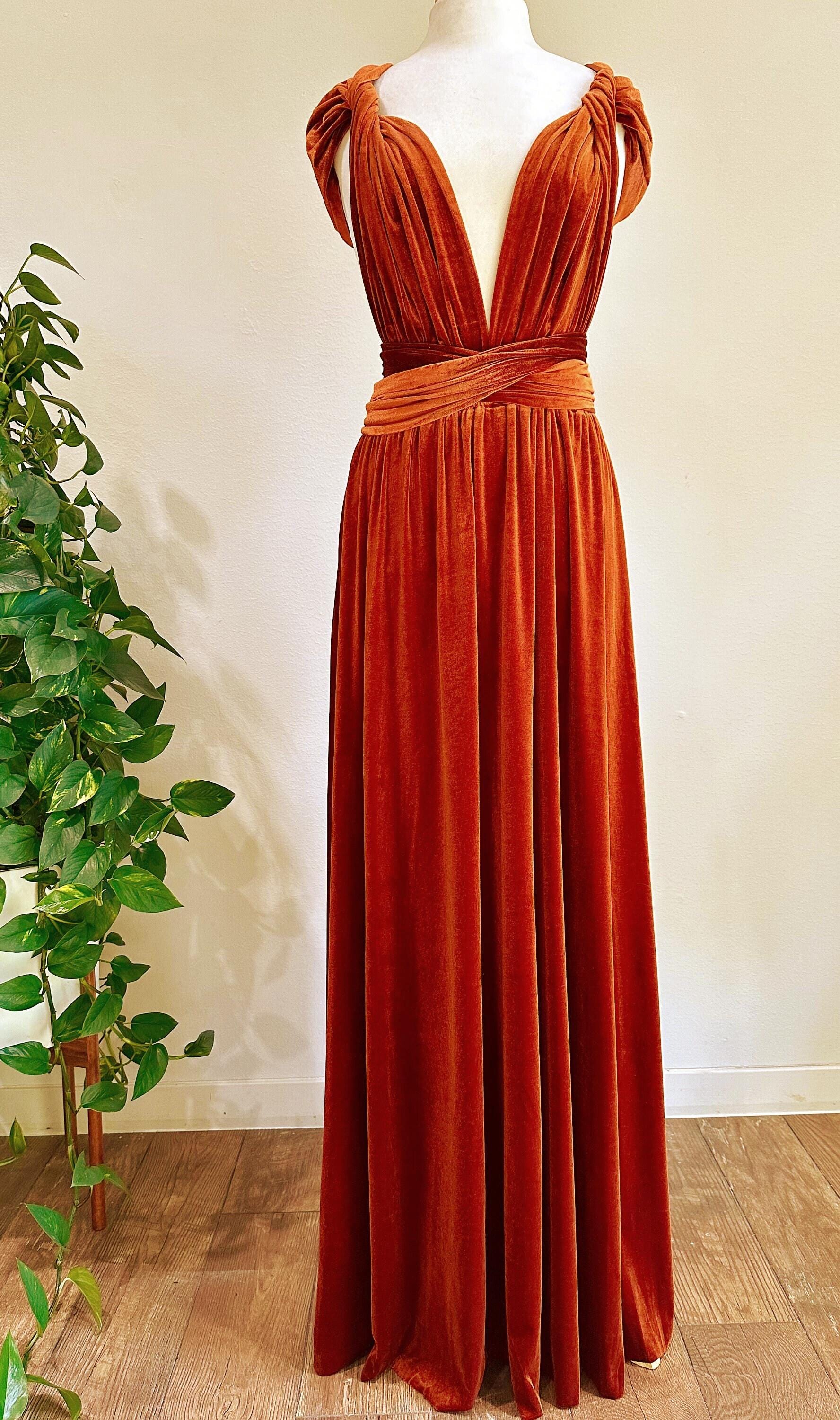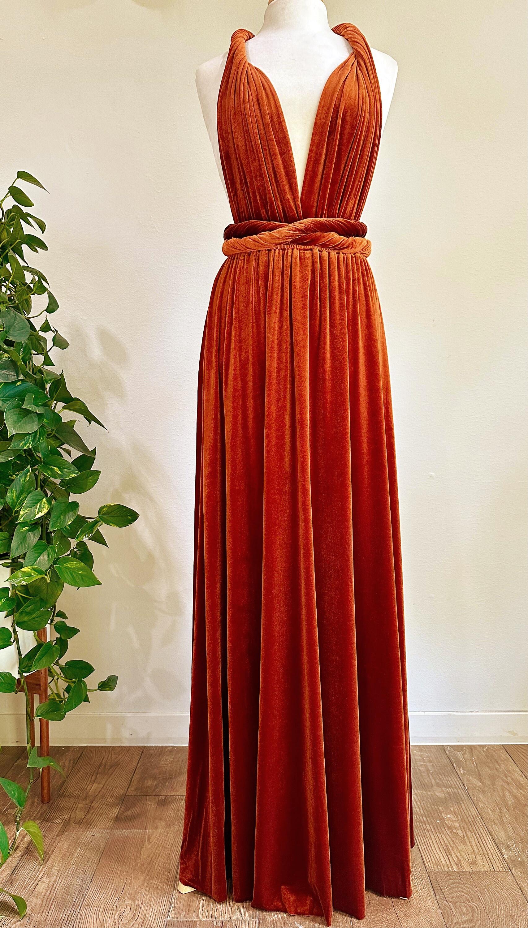 BURNT ORANGE VELVET Convertible Dress