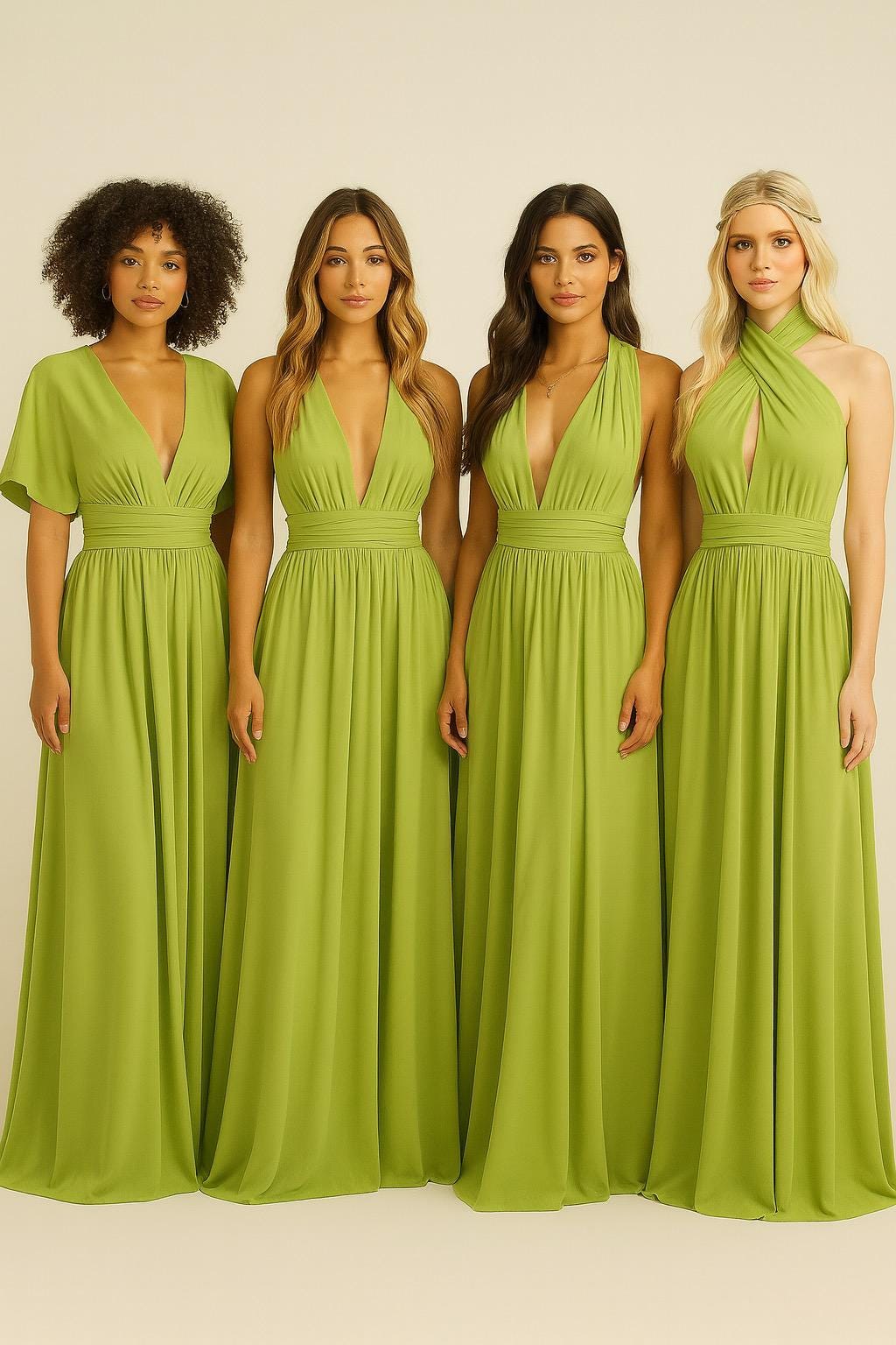 The dress was great for versatility, but definitely not built for every body type because of the thin fabric and won’t work for my bridesmaids.