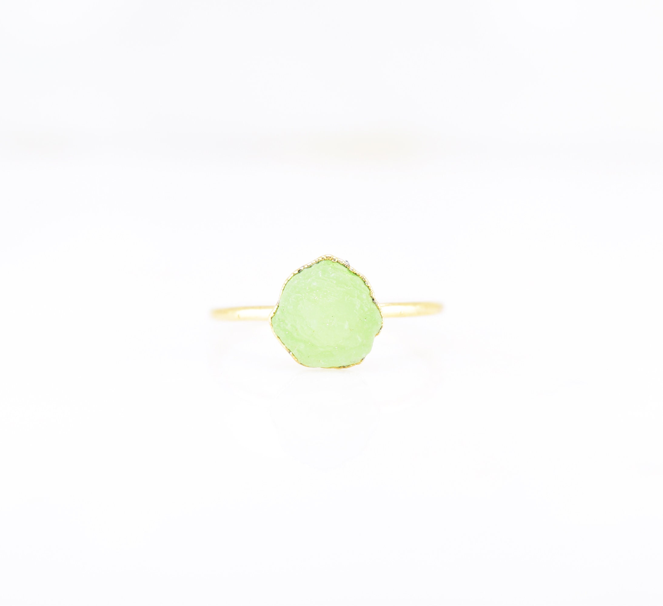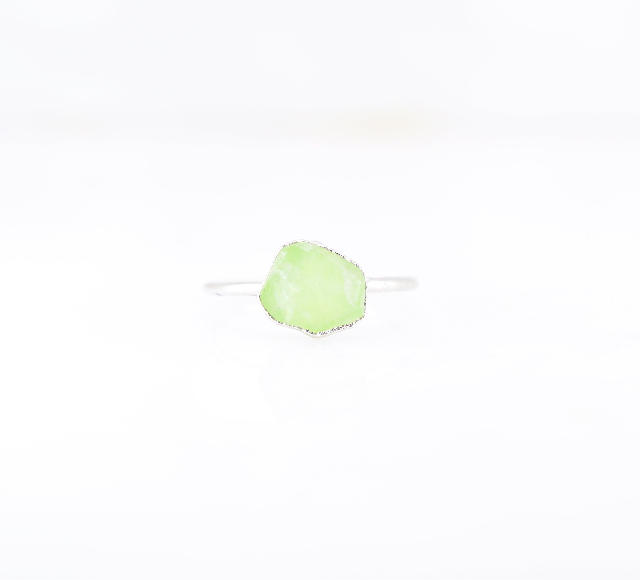 The Pure Lemon Lime PREHNITE forms this one of a kind ring. The stone size will be around 8mm.
