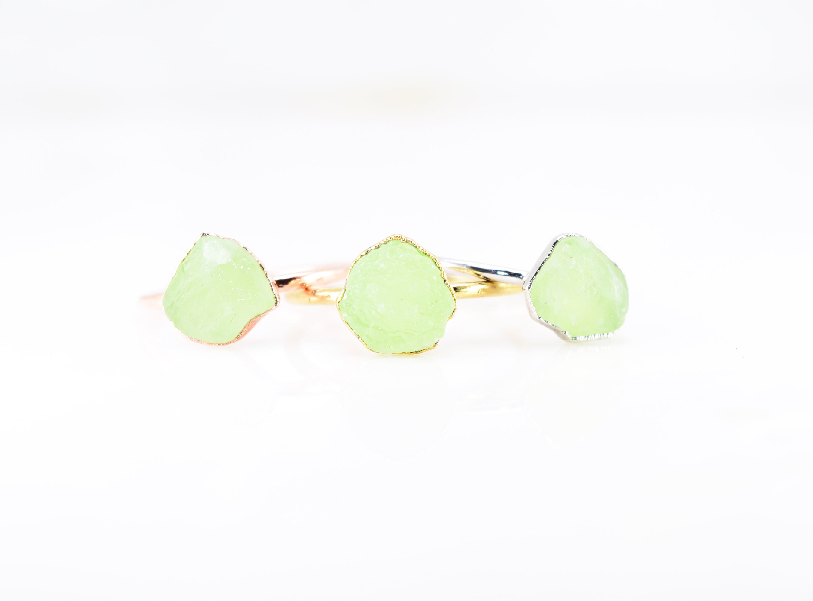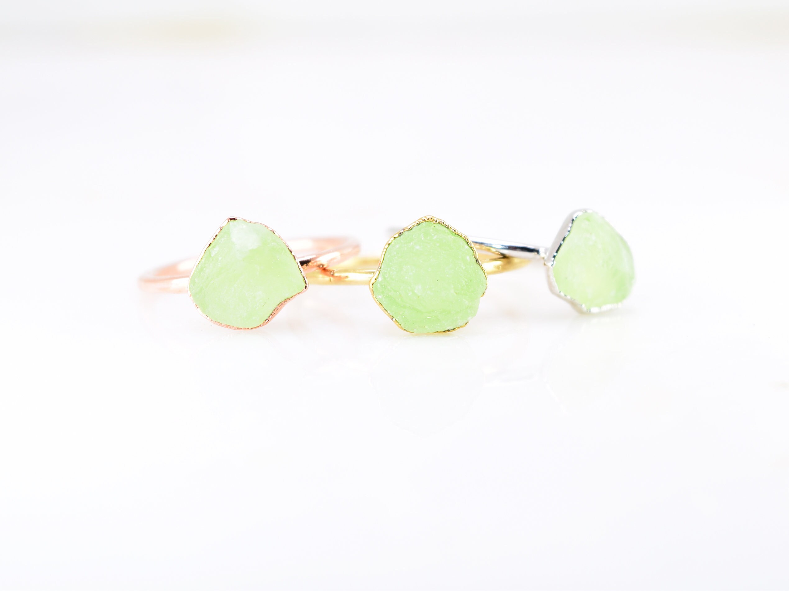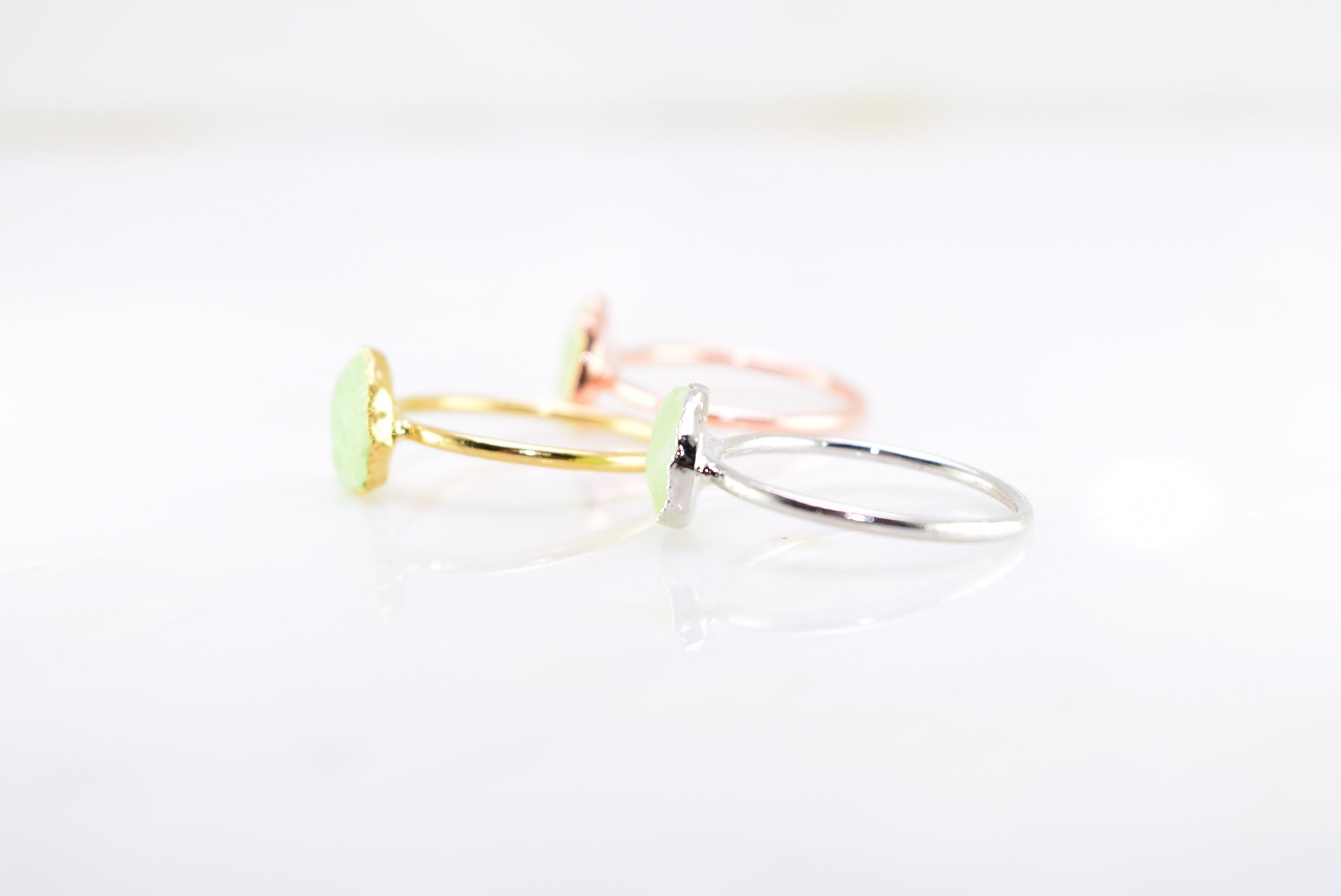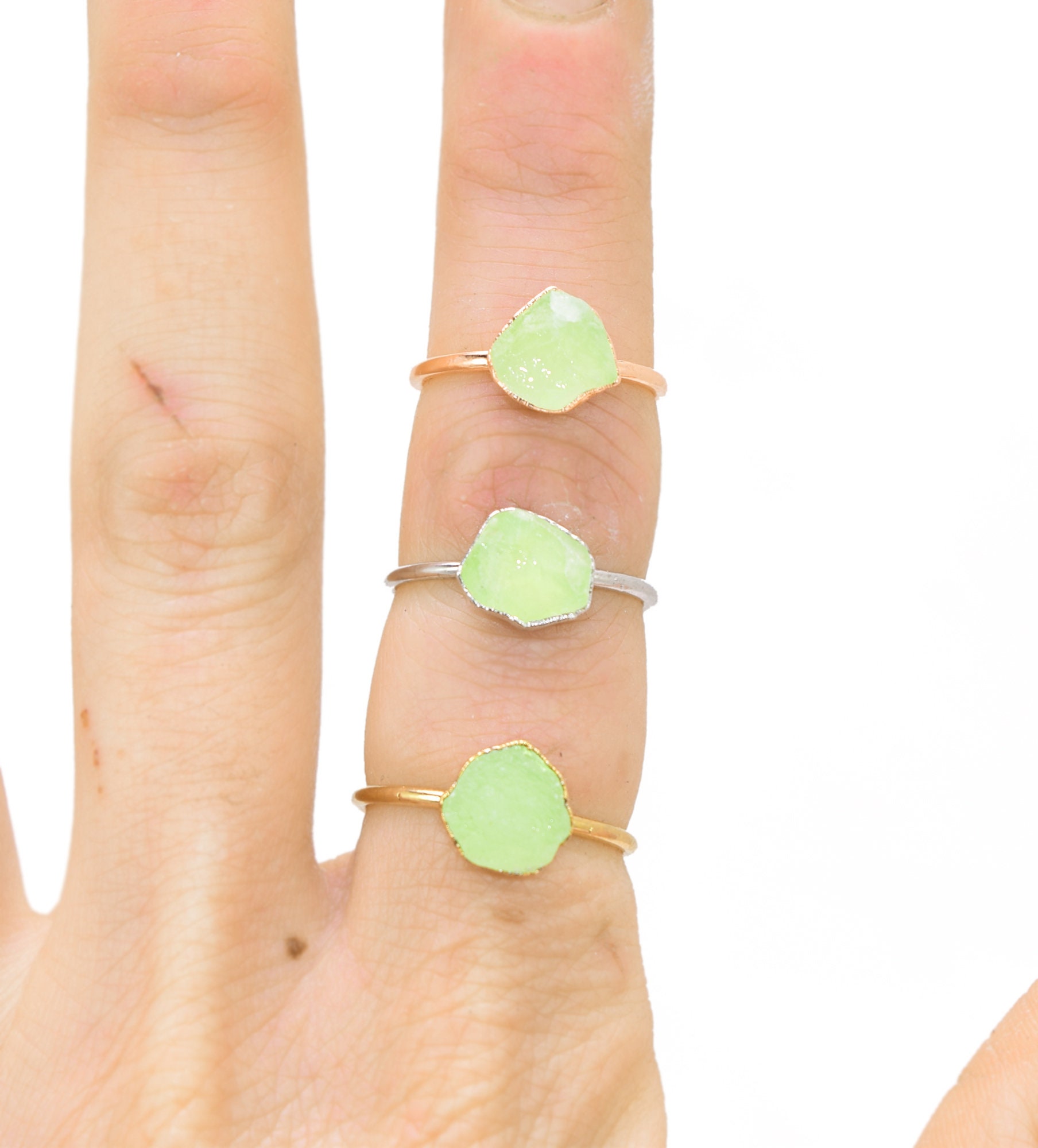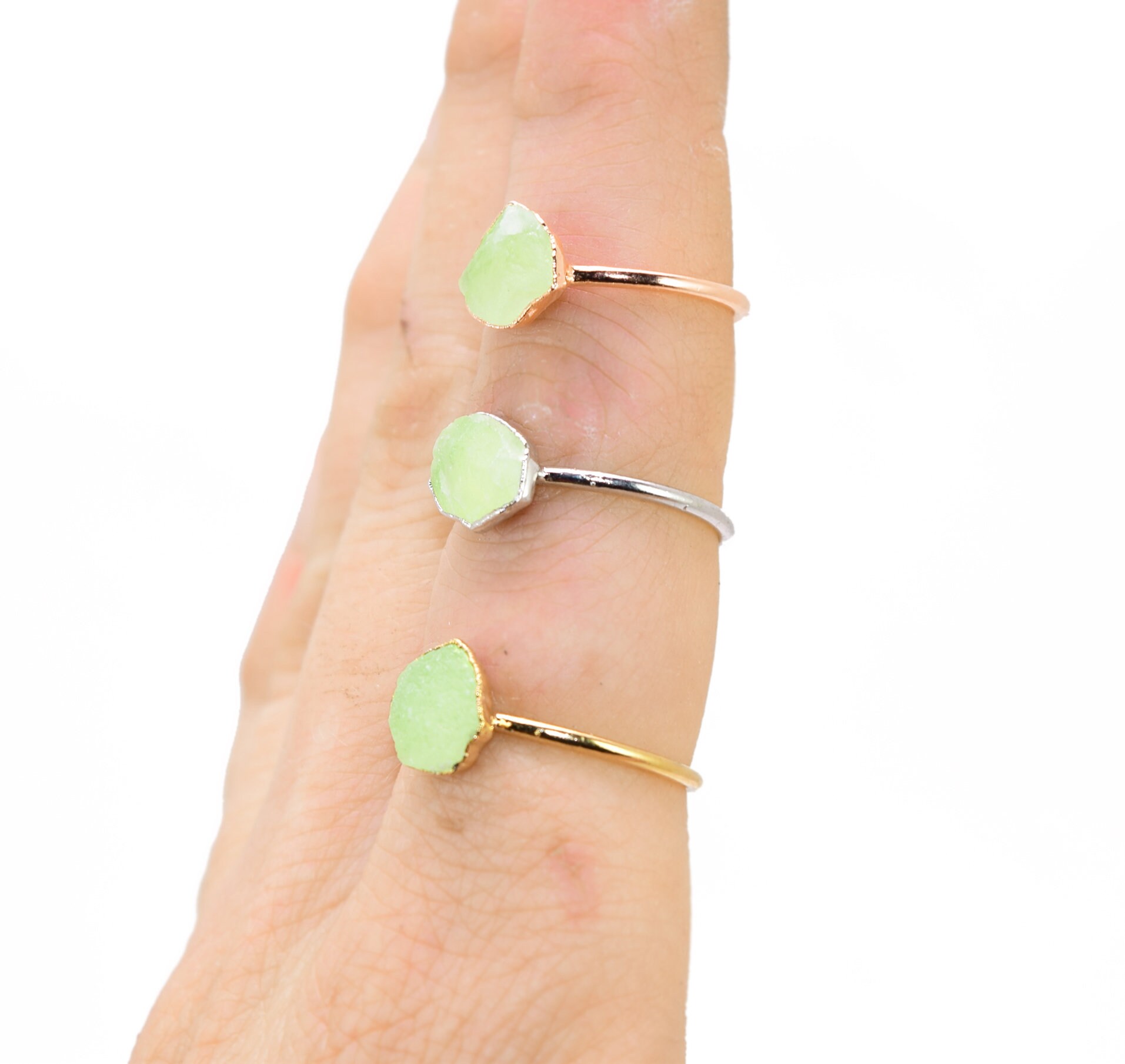 I’ve always wanted a prehnite and a green garnet ring but they are difficult to find. These are the perfect design. So pretty and stackable—I’m in love 😻