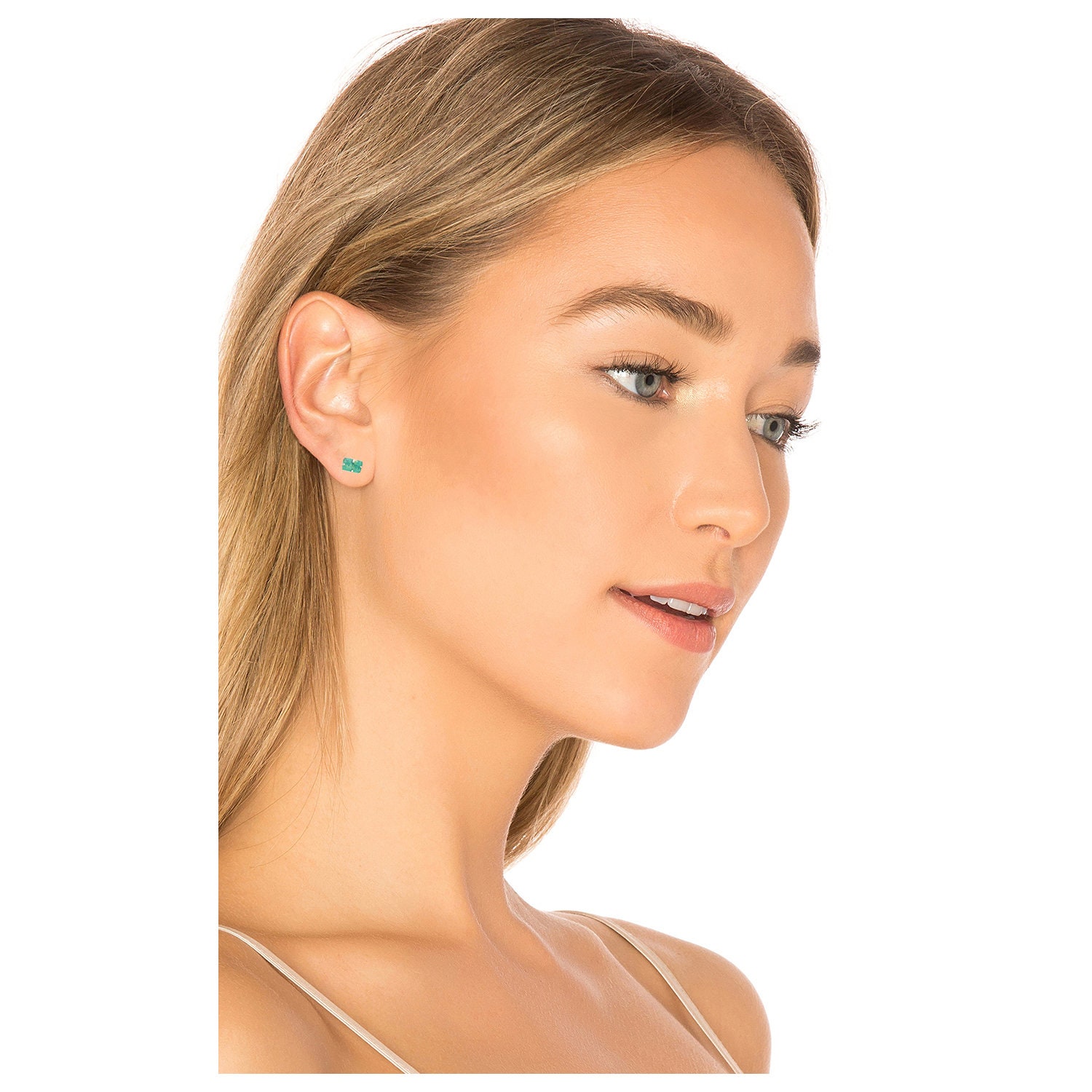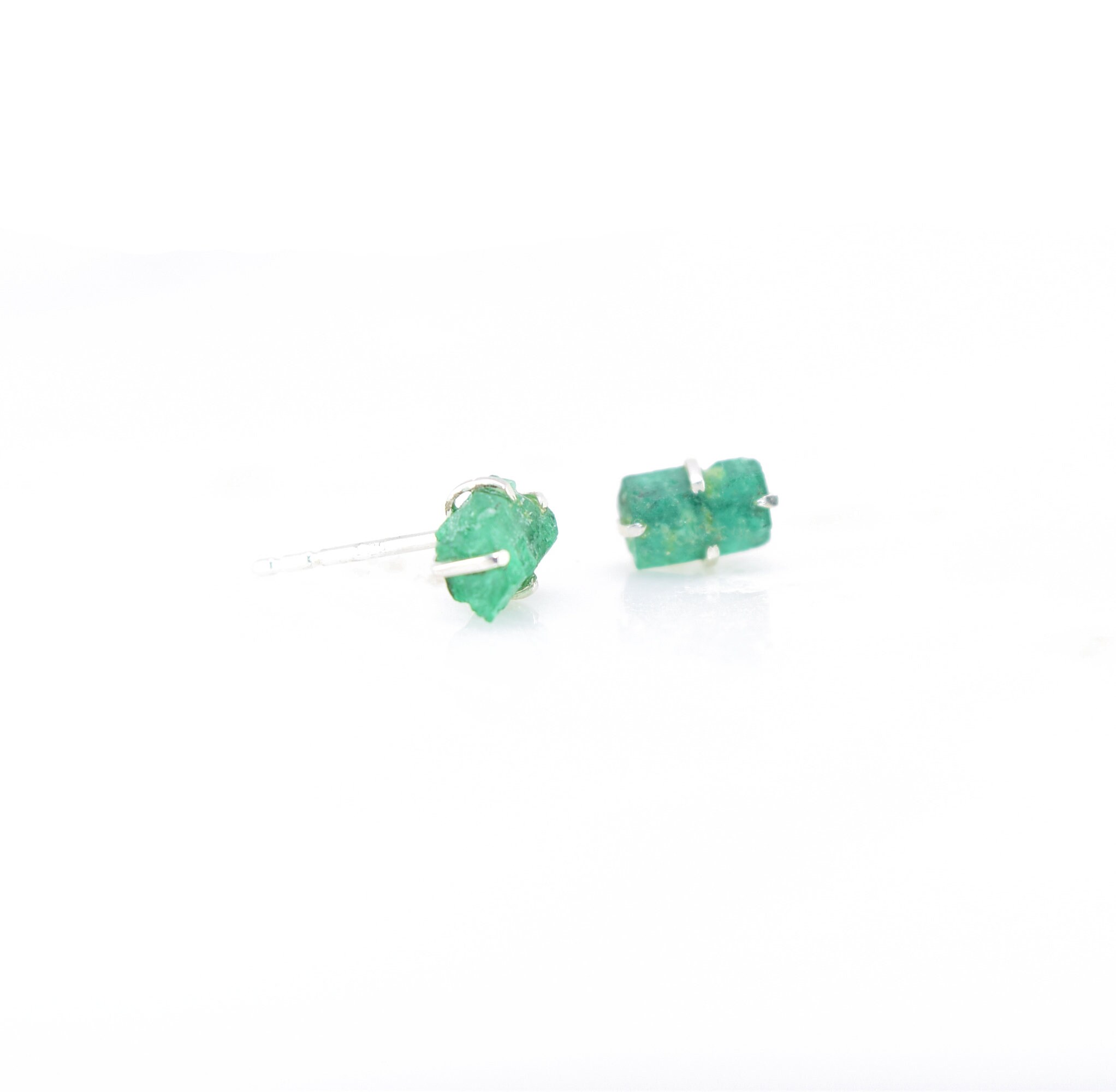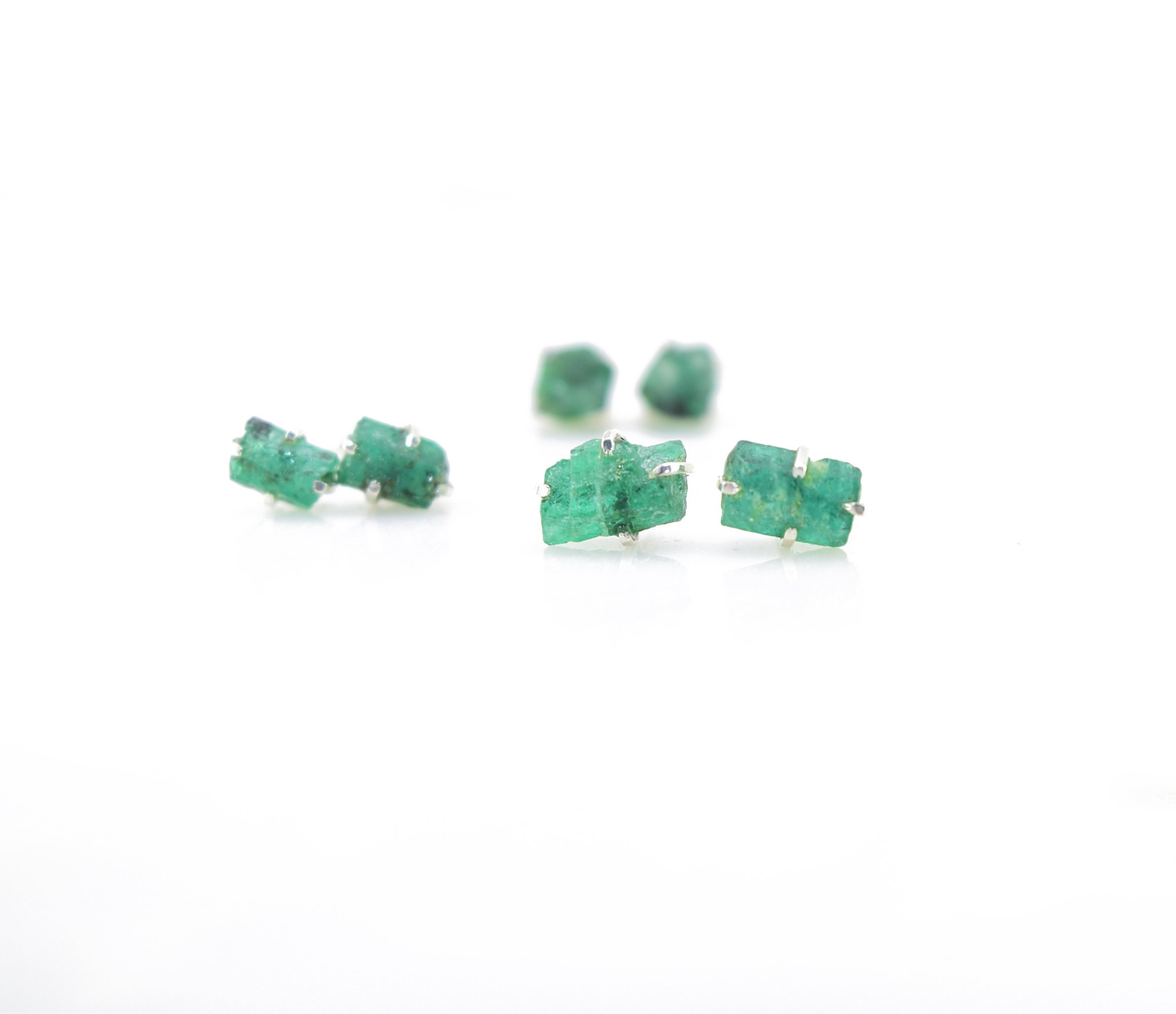 The Pure Raw Emeralds form these one of a kind stud earrings. Each stone varies. No two stones alike. Stone sizes vary, but most will be between 7-8mm. THE PERFECT STUD SIZE.
