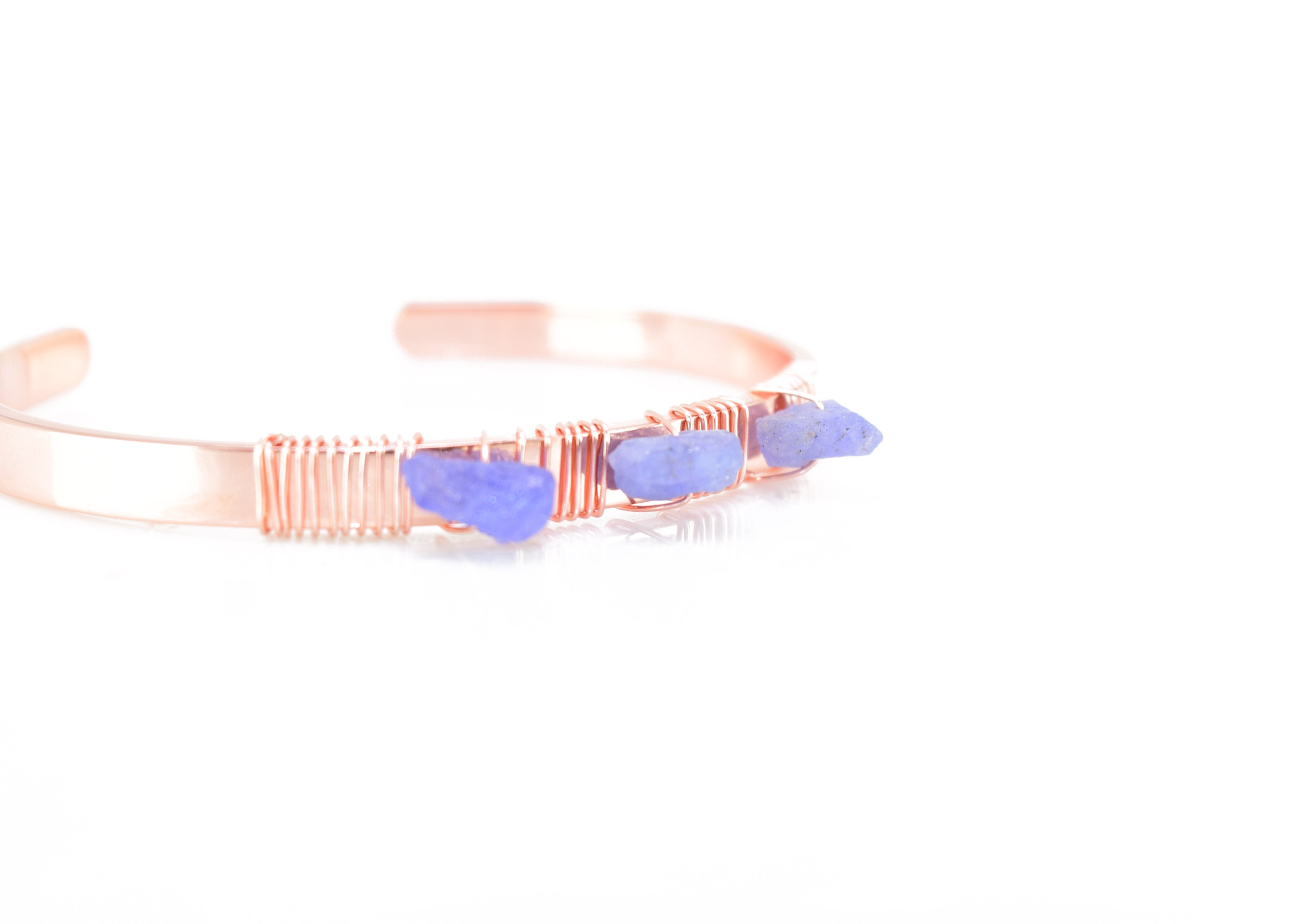 Each stone is hand selected and wire wrapped for a one-of-a-kind cuff. Designed to be mixed and matched however you please.