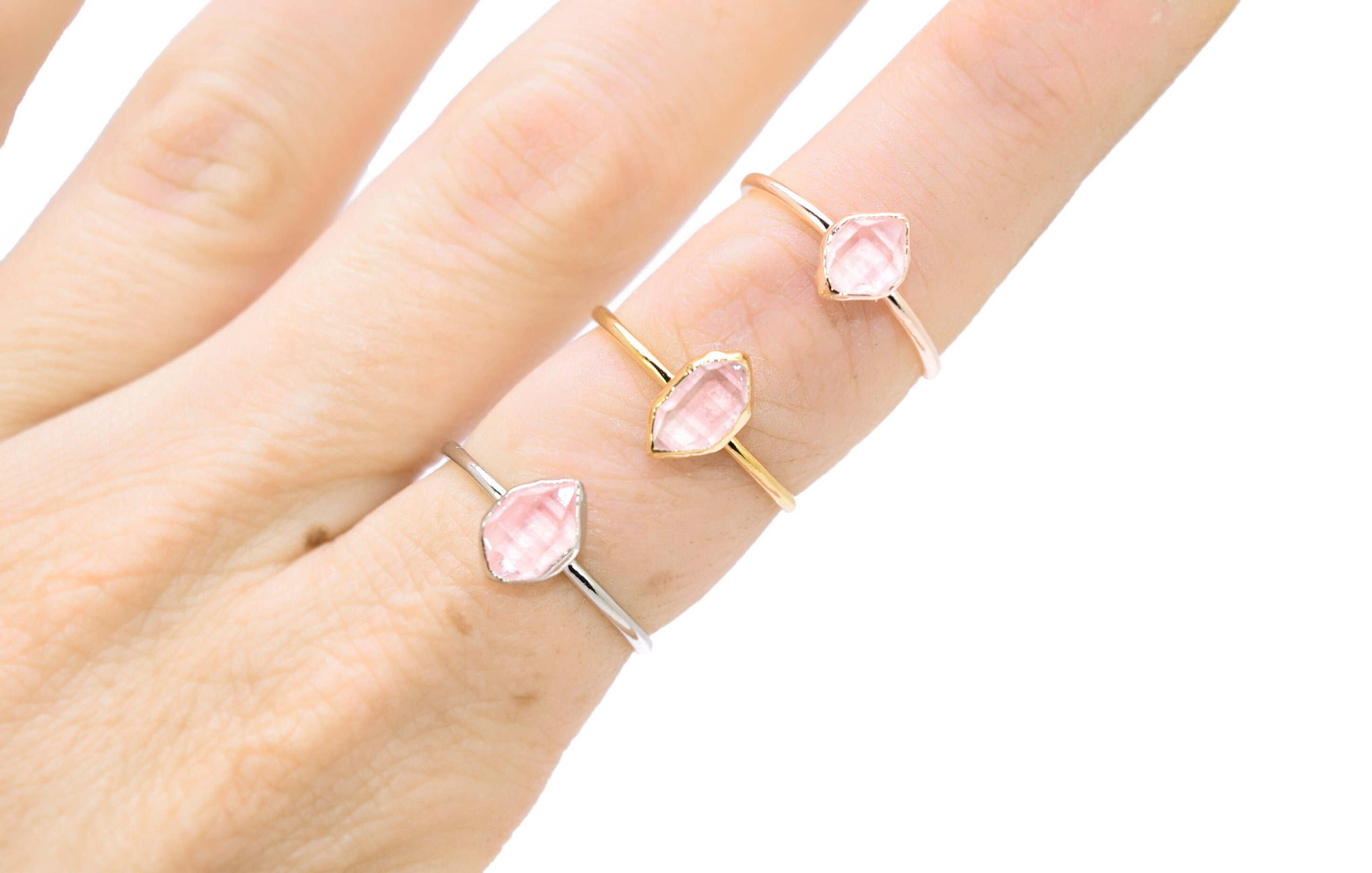 Rose Pink HERKIMER DIAMOND STACKING RING