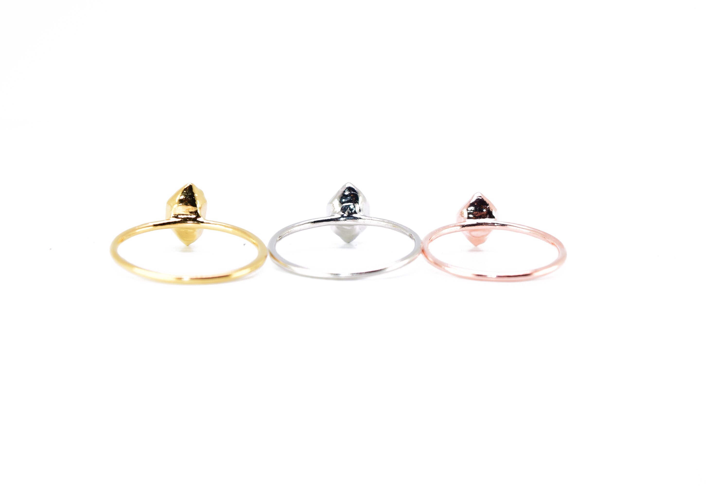 Each stone is hand selected, set in a 1.5mm 925 Sterling Silver band, and electroformed for a one-of-a-kind ring. Designed to be mixed and matched however you please.