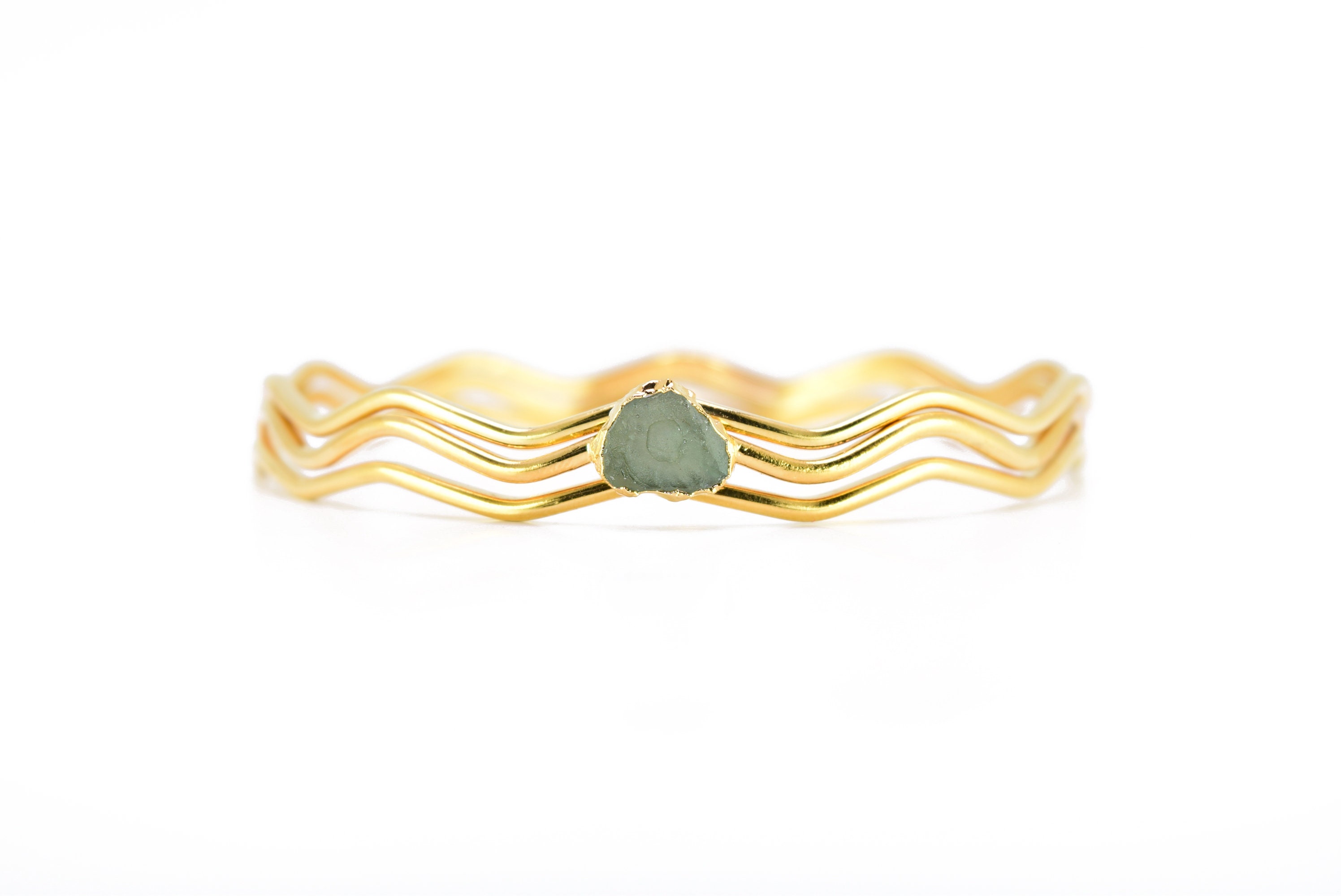 MOlDAVITE 3 PC Wavy Bangle Set