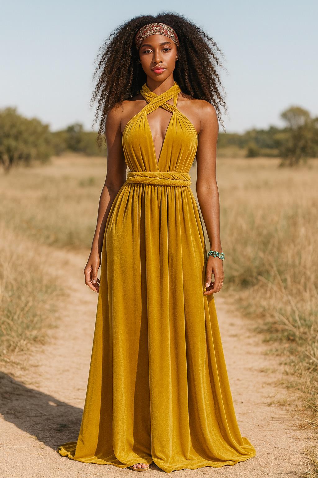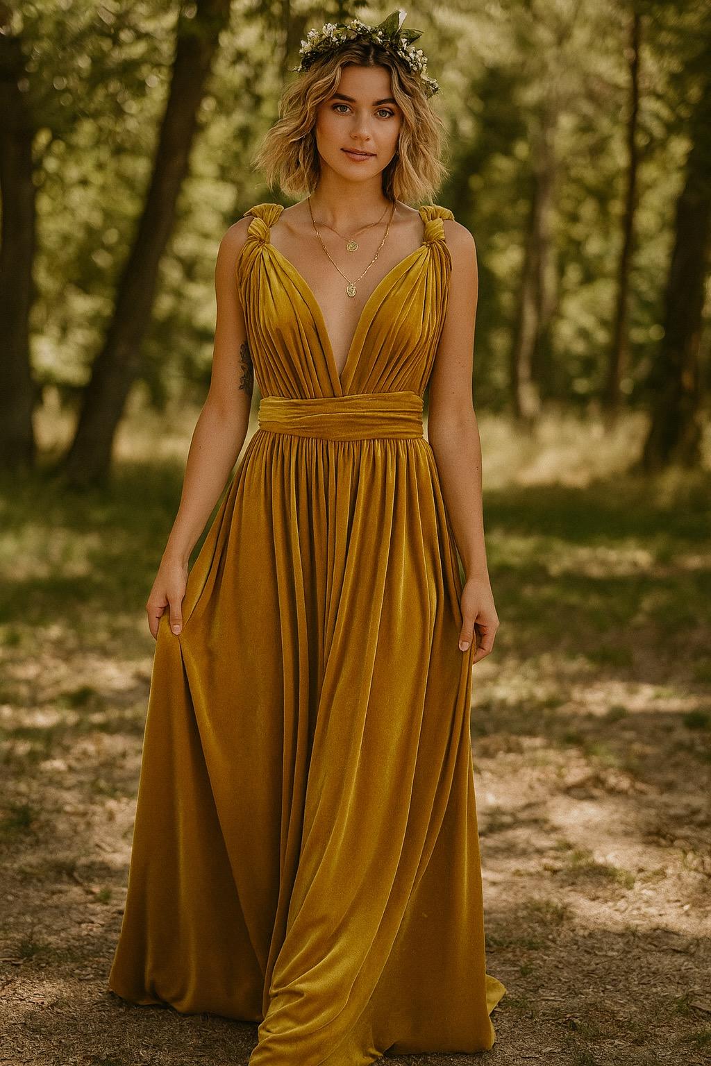 MUSTARD VELVET Convertible Dress