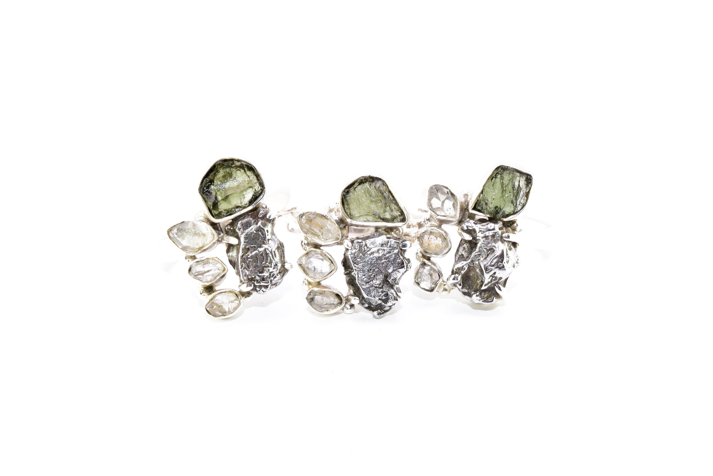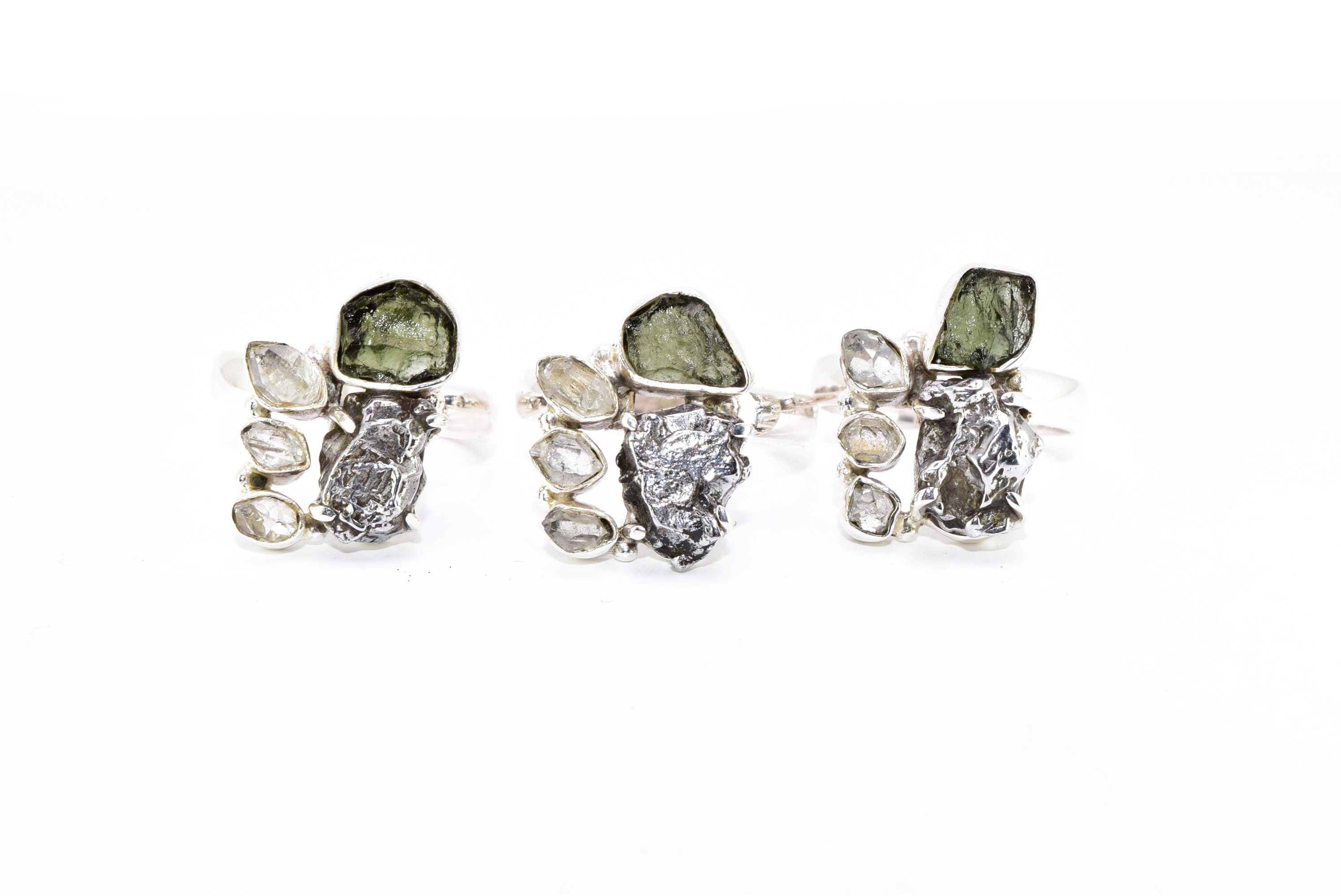 Each ring will include 1 pc Authentic Czech Moldavite / 1 pc Authentic Campo Del Cielo Meteorite / 3 pcs Authentic Herkimer Diamonds